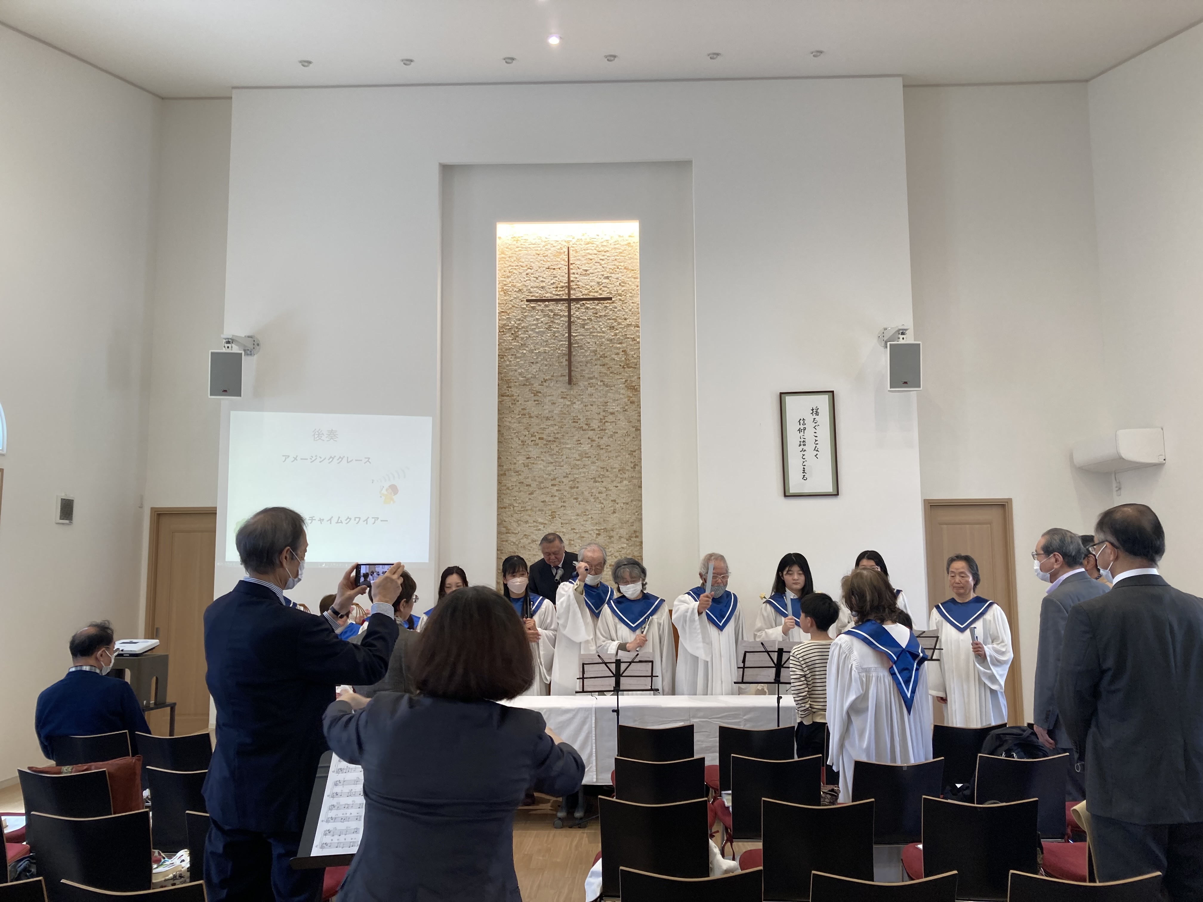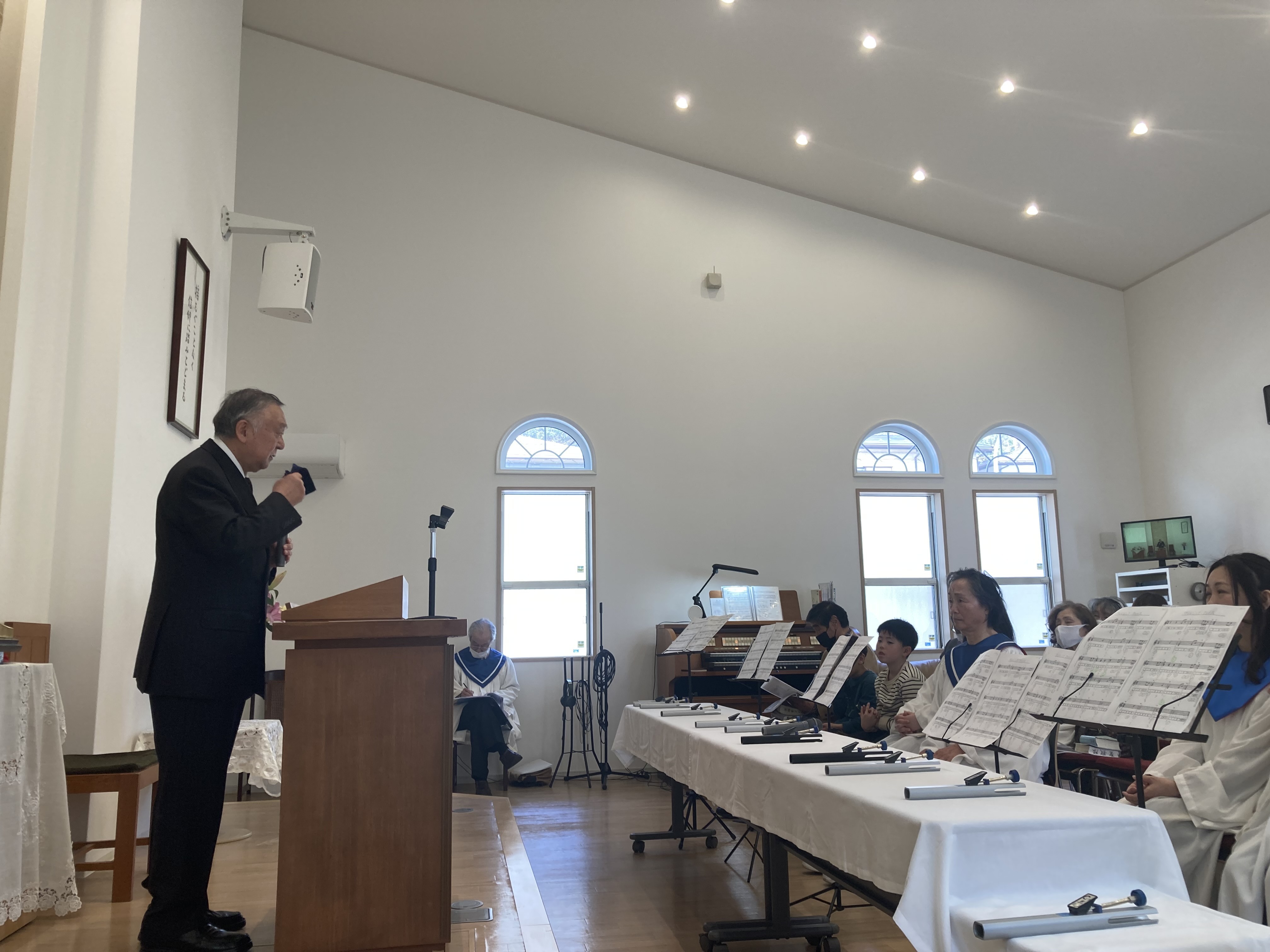 並木裕忠協力牧師は、クリスマス礼拝の説教のあとも、聖歌隊とトーンチャイムコワイヤーに入ってくださいました。ご苦労様でした。