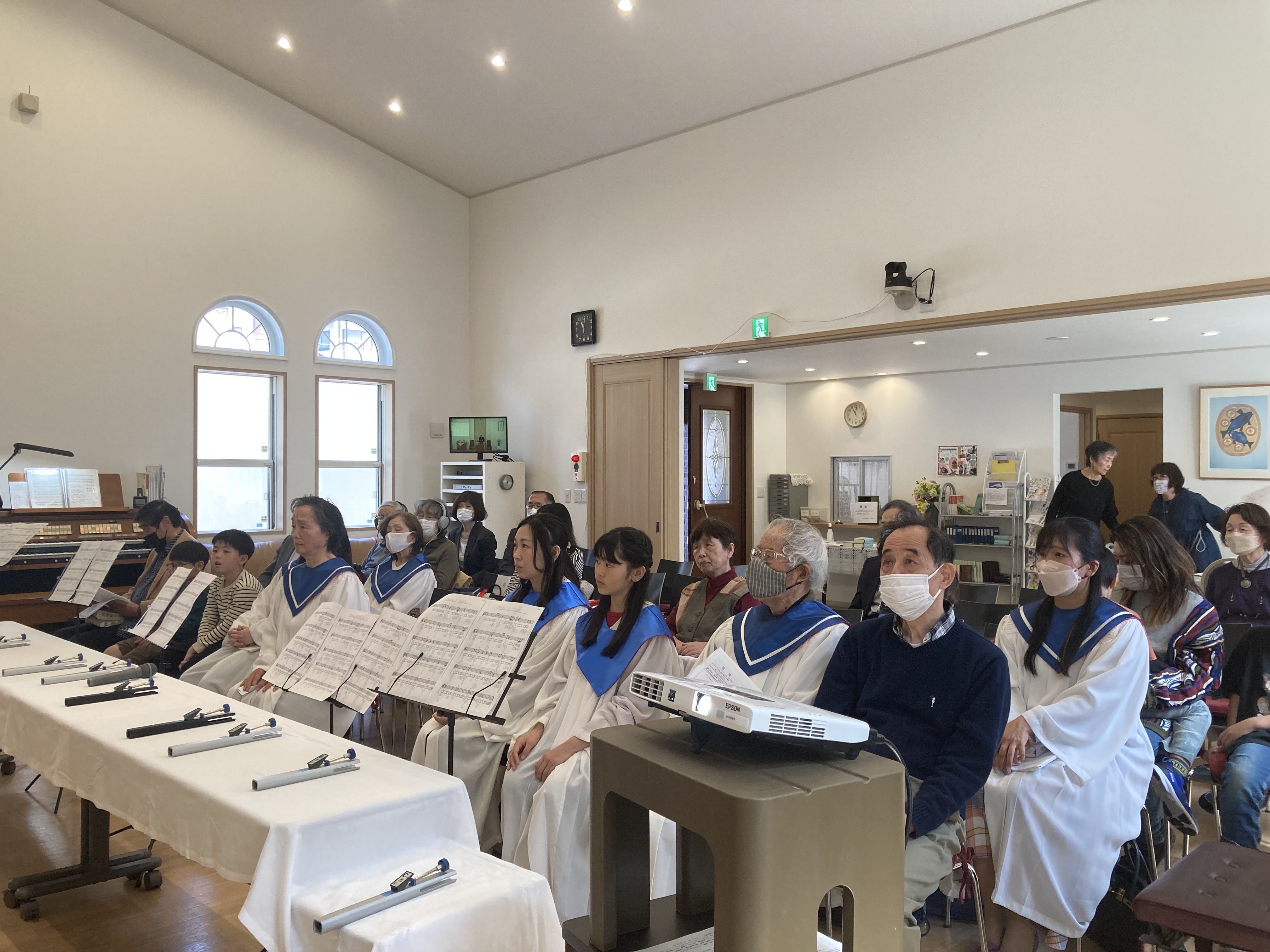 並木和美姉は、音楽が大好きな教会員に囲まれ、礼拝奏楽者、聖歌隊・トーンチャイムコワイヤー指揮者と、大忙しいところです。