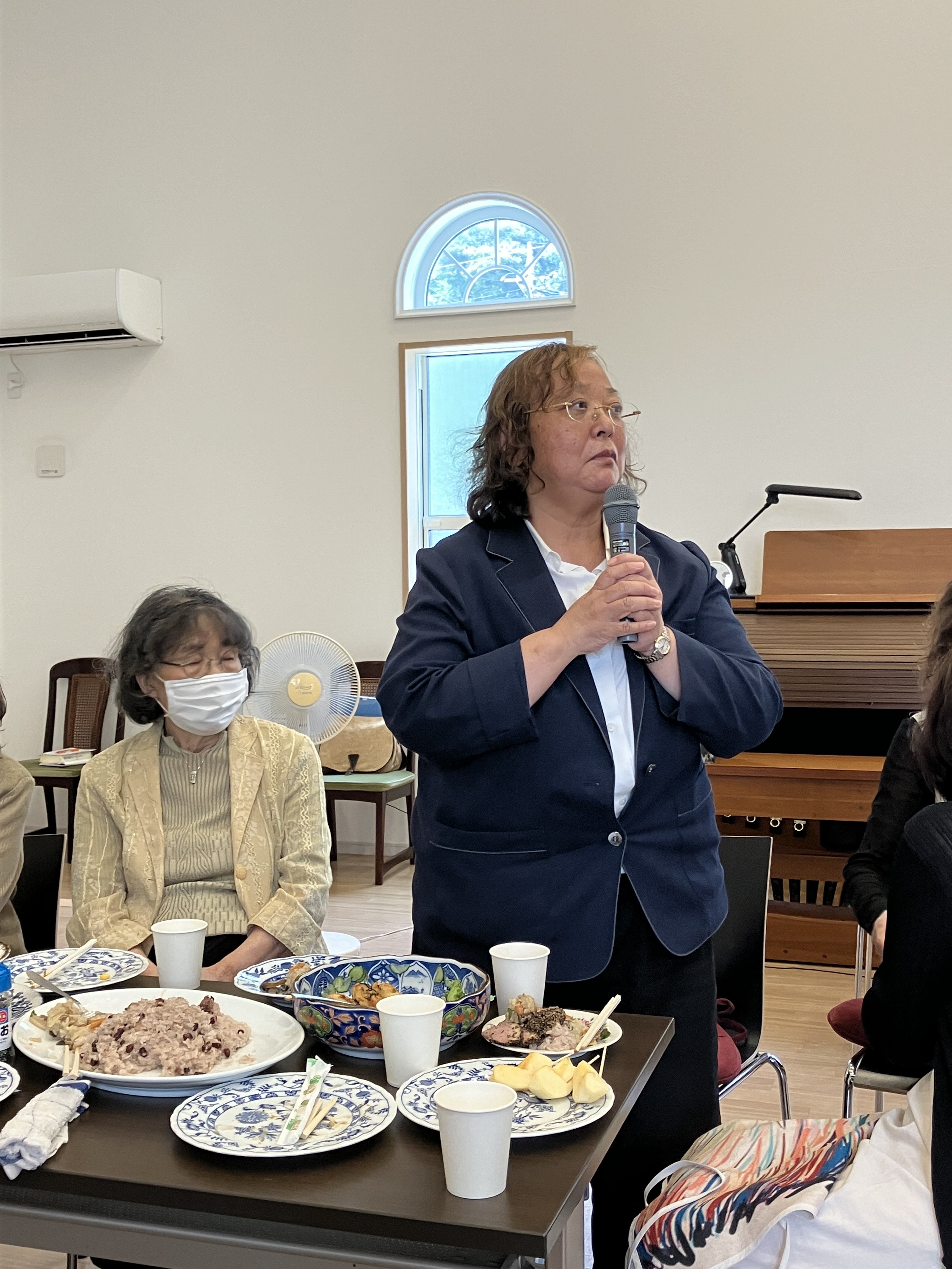 当教会の女性会長西山律子姉です。ホットな方で、今回の愛餐会でも活躍されていました。